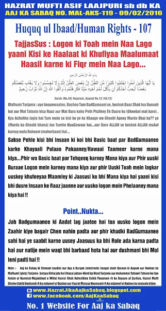 No.1 Website for Aaj ka Sabaq | AAJ KA SABAQ No. MAL-AKS-119 | Huquq ul Ibaad/Human Rights - 107