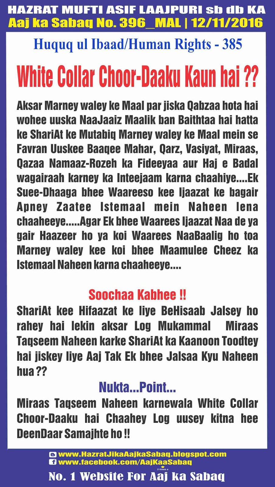 No.1 Website for Aaj ka Sabaq | Aaj ka Sabaq No. 396_MAL | Huquq ul Ibaad/Human Rights - 385