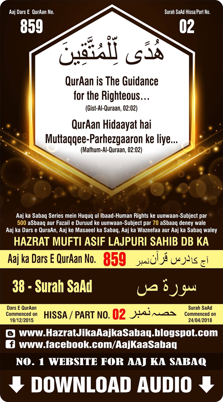 No.1 Website for Aaj ka Sabaq | Aaj ka Dars e QurAan No. MAL-AKDEQ-859 |